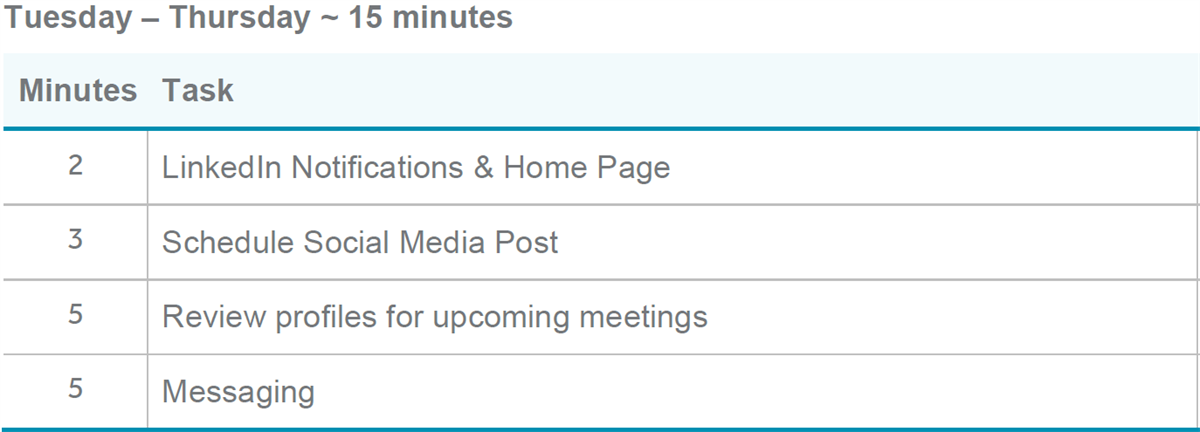 The key to success with Digital Marketing is to incorporate daily habits. Below are suggested Time Blocks & Tasks to help you make LinkedIn & Digital Marketing a part of your Daily Routine.