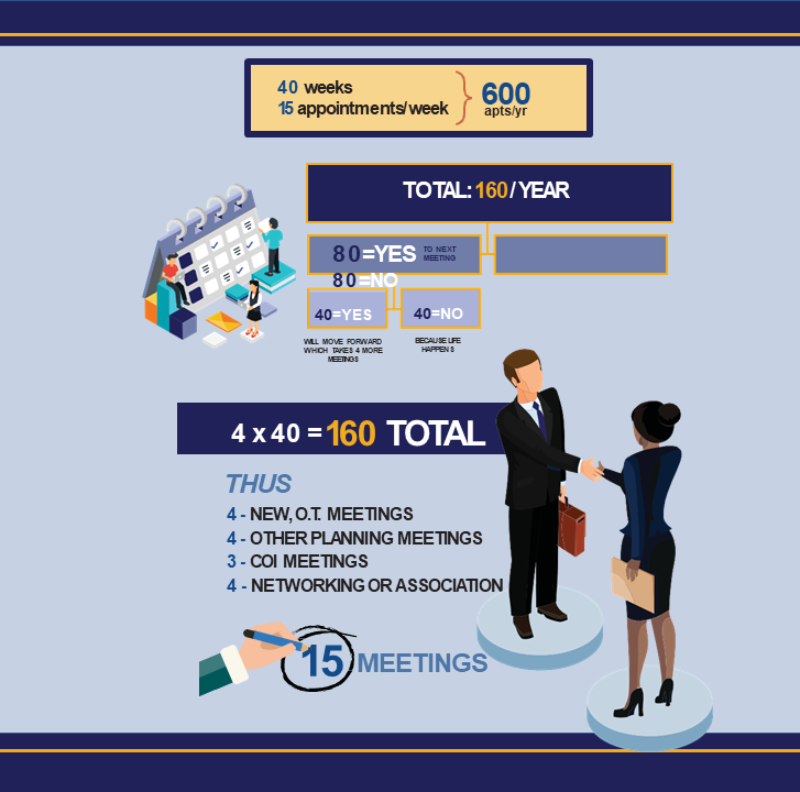 - Start with Project 200 + 15 new prospects per week x 40 weeks= 60 new prospects per year