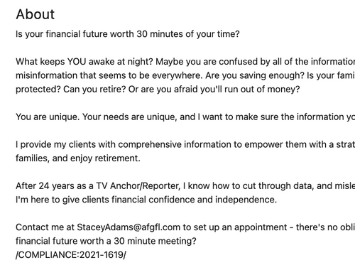 Now that you have a Bio, the FFG Marketing Team needs your info to create your personalized Marketing materials.